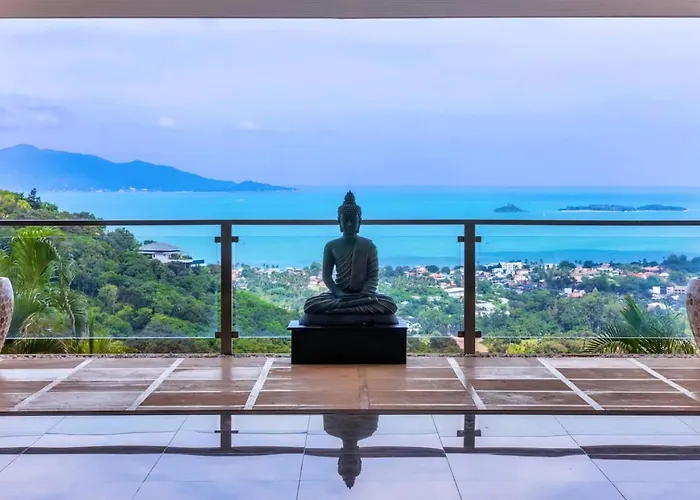 Located about 25 minutes' walk from the Khun Si Waterfall, Here And Now Luxurious Sea View & Spa Villa Koh Samui boasts a private swimming pool with a hammam, a hot spring public bath, and a Jacuzzi. Featuring a patio, this 6-bedroom family-friendly villa is situated 4.2 km from the Chinese Temple.